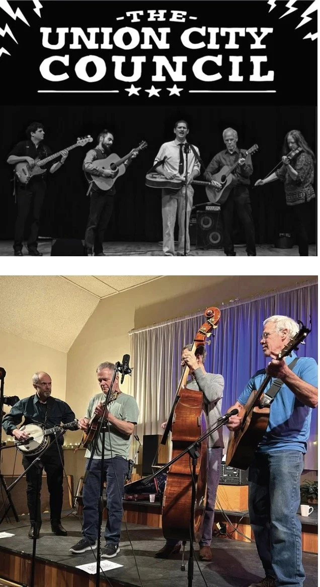 Formed around a shared respect for traditional bluegrass, The Union City Council draws its members from across the South Puget Sound and Hood Canal area. Their music blends old-time mountain sounds with touches of fiddle tunes, blues, gospel, jazz, and folk. With a lineup that includes guitars, dobro, mandolin, bass, and fiddle, the band brings energy and variety to the stage, shaped by the different musical backgrounds each member brings to the group.