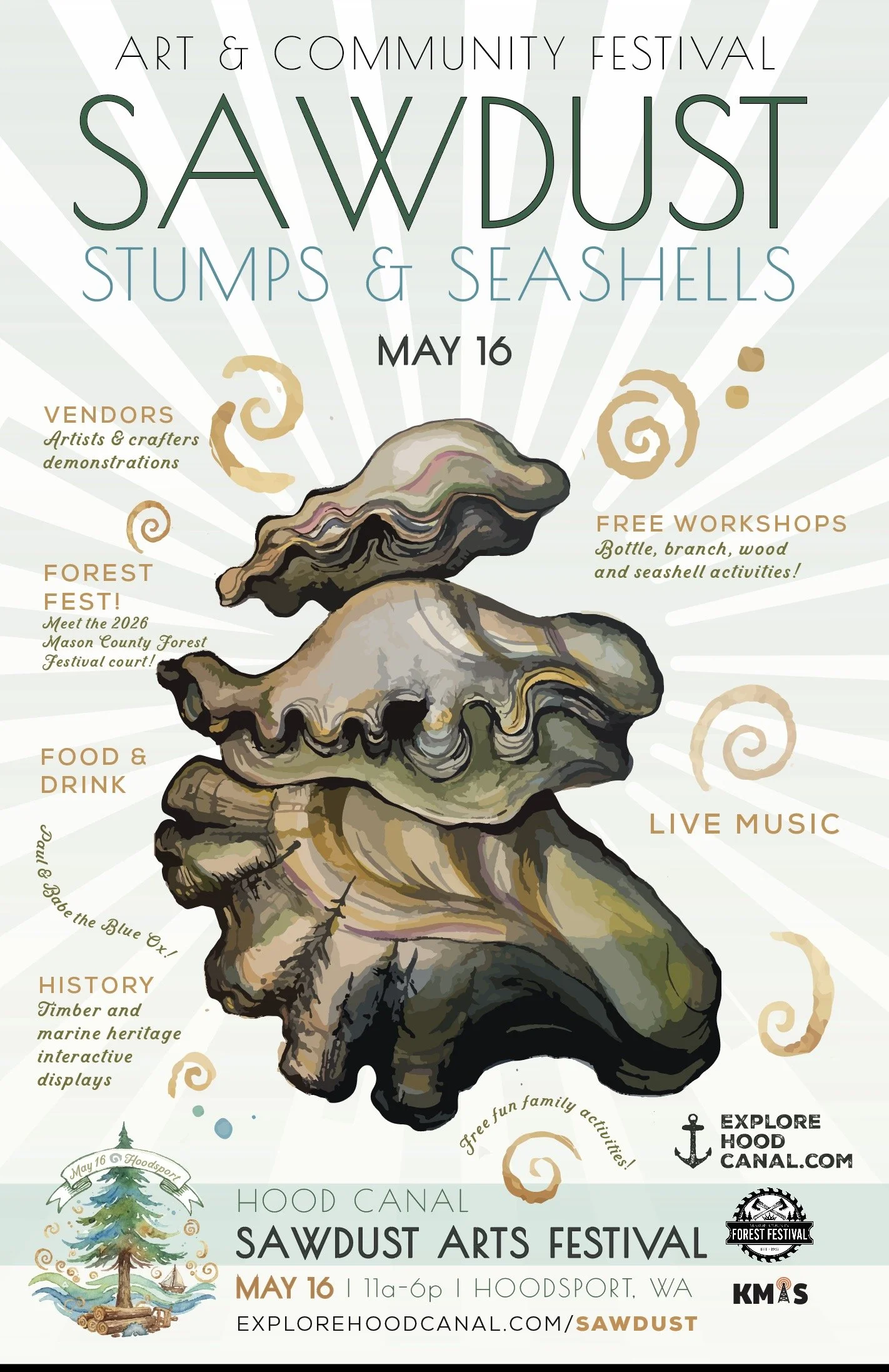Sawdust Stumps and Seashells Arts Festival is a community-wide celebration of local artists, artisans, and performers, bringing together creativity, heritage, and small-town energy in the heart of Hood Canal. The festival features galleries, hands-on workshops, live music, and performances, all designed to highlight the region’s creative spirit and deep connection to its timber roots.