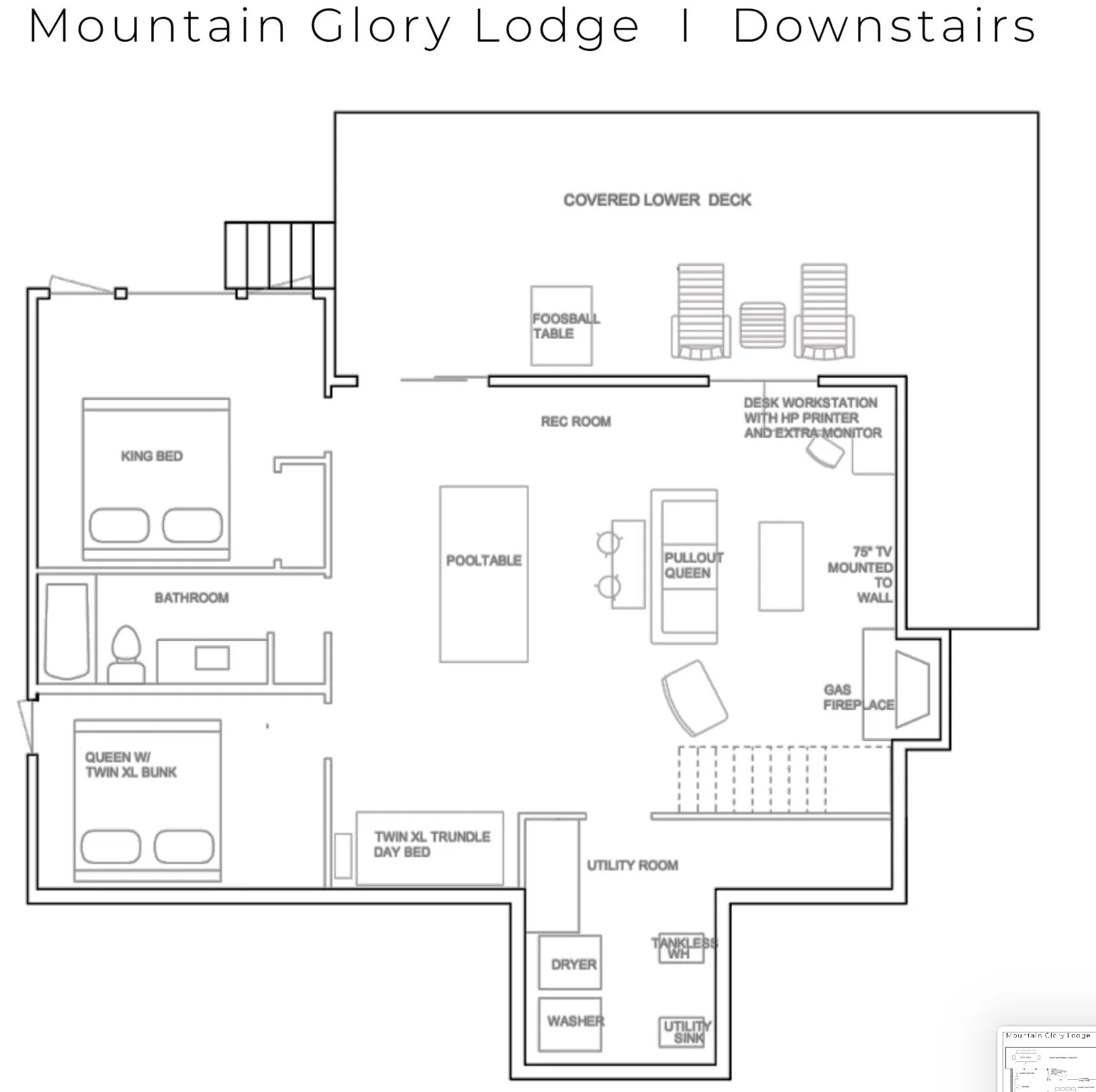 For those craving activity, the property delivers more than expected. A lighted pickleball court, basketball setup, and classic yard games like cornhole and ladderball create easy opportunities for play. Inside, a pool table and game room keep the energy going, while a collection of yoga equipment, free weights, and even a massage table cater to guests looking to recharge more intentionally.
